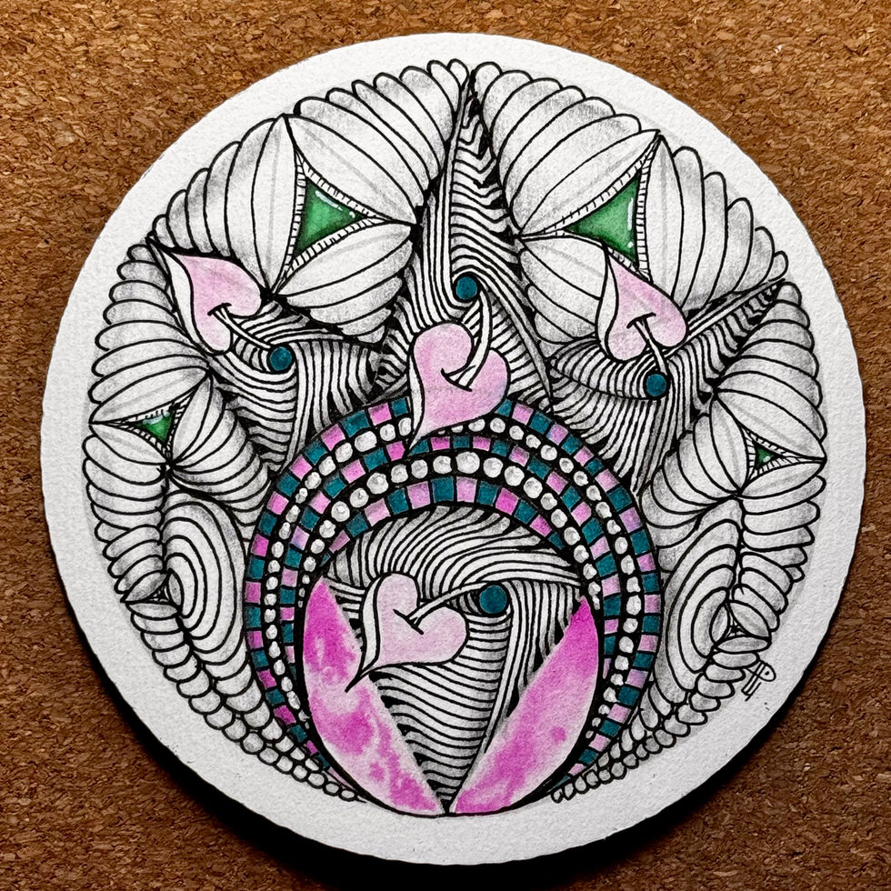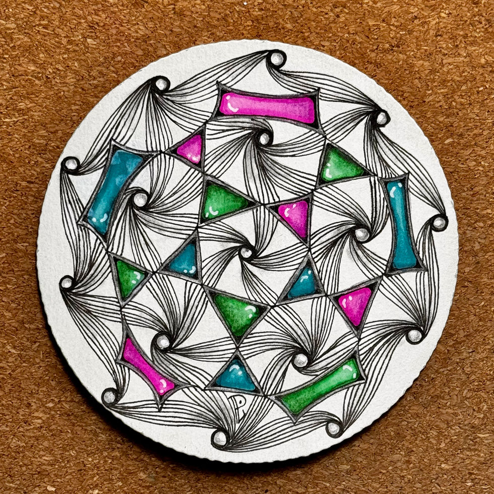 I Project Pack 26 arbetade vi med The elegance of limits. Vi tanglade på pre-strung tiles, och dekorerade med vattenlösliga markers.